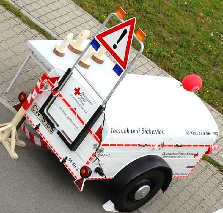 Dieser Anhänger ist bestückt mit verschiedenen Absperrmaterialien, um kurzfristig eine Einsatzstelle entsprechend abzusichern. Dies kann zum Beispiel bei einem Behandlungsplatz bei einer Großschadenslage der auf einer Straße aufgebaut zur Absicherung der Einsatzkräfte notwendig werden.